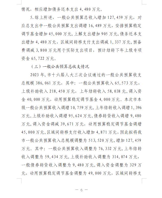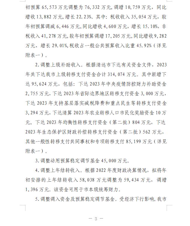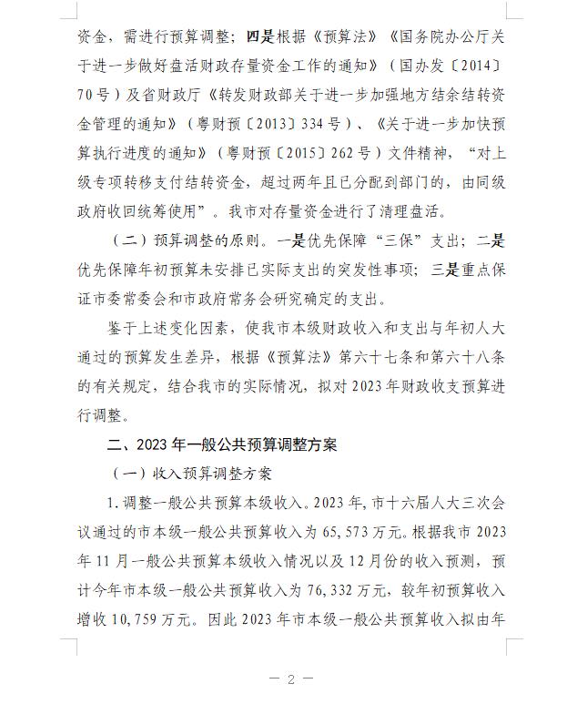 關于《連州市2023年財政預算調整方案(草案)》的報告