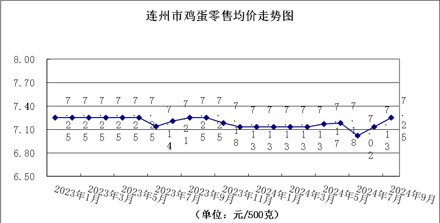 蛋類雞蛋平均零售價(jià)格為7.25元/500克,環(huán)比升1.68%。鴨蛋平均零售價(jià)格為8.85元/500克,環(huán)比升2.55%。